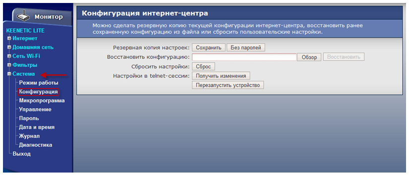Для сохранения текущих настроек роутера необходимо нажать кнопку «Сохранить». Файл с настройками будет сохранен в указанное место на жёстком диске.