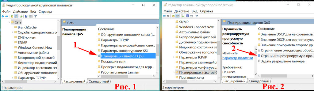 Дальше ищем «Планировщик пакетов QoS» и «Ограничить резервируемую пропускную способность».
