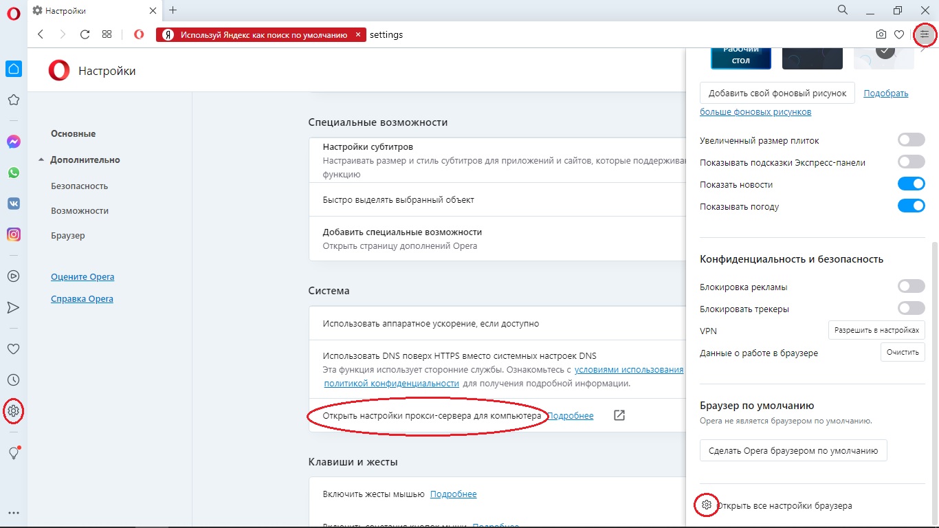 Принцип настройки прокси Opera схож с Google Chrome, поскольку они сделаны на одном движке Chromium. Для настройки прокси в браузере Opera потребуется выполнить следующие шаги: