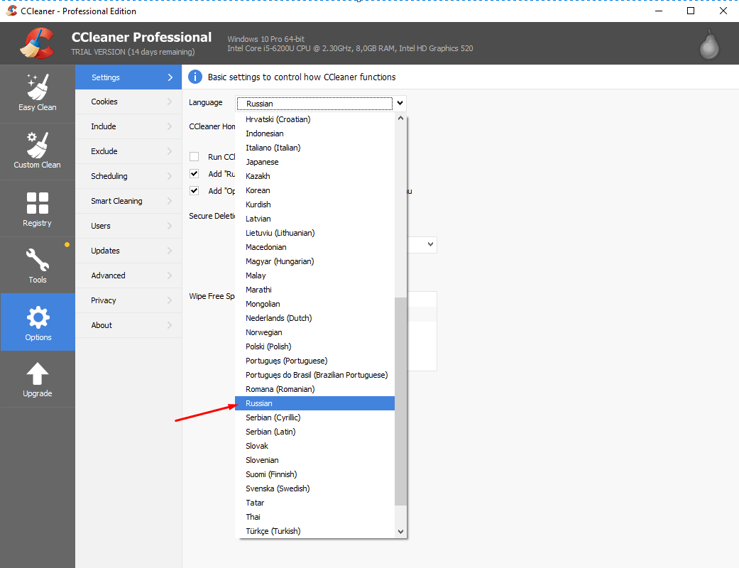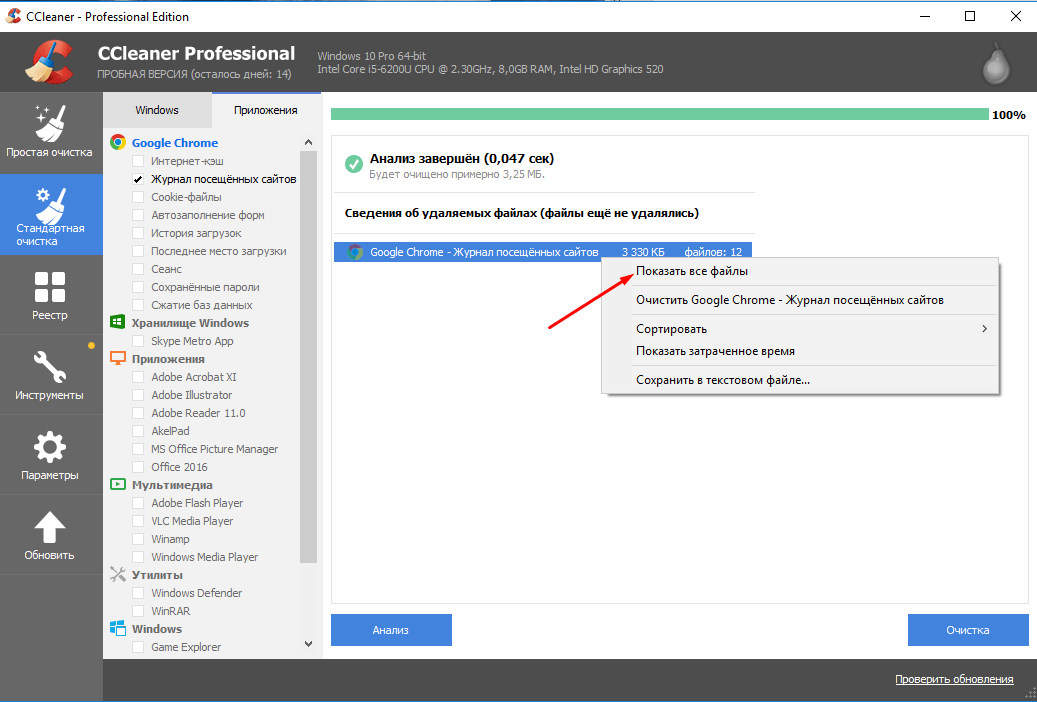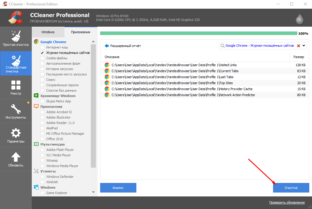 Чтобы не лезть в сложные настройки, можете воспользоваться специальным программным обеспечением. Это существенно упростит поставленную задачу. Например, скачайте CCleaner – это распространенный программный пакет. Базовый функционал предоставляется совершенно бесплатно, что подойдет для повседневных нужд.