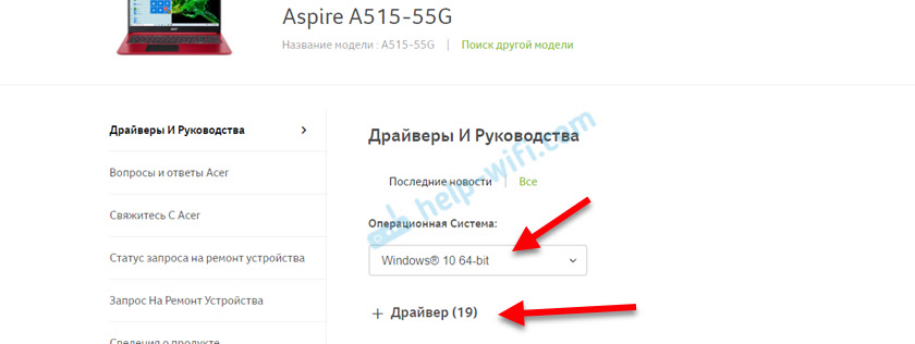 Например, ноутбук Acer модель Aspire 5 A515-54G. Заходим на сайт Acer и ищем свою модель (обычно в разделе «Поддержка», «Загрузки»).