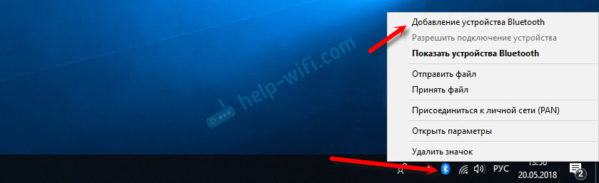 А чтобы подключить наушники, геймпад, мышку, клавиатуру, или другое Bluetooth-устройство к компьютеру, зайдите в «Параметры» в раздел «Устройства». Или нажав на иконку в трее и выберите «Добавление устройства Bluetooth».