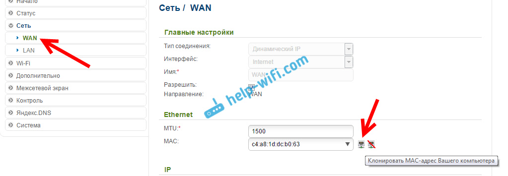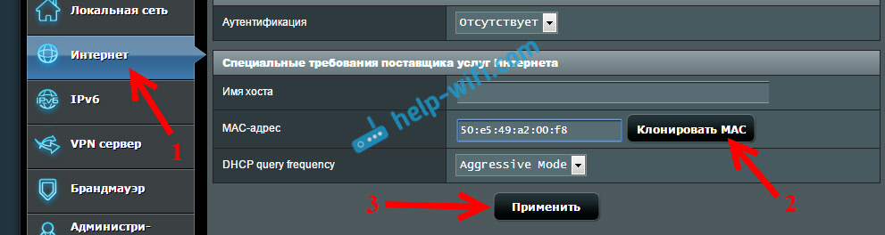 Сеть — интернет — Mercusys (клонирование MAC-адреса)