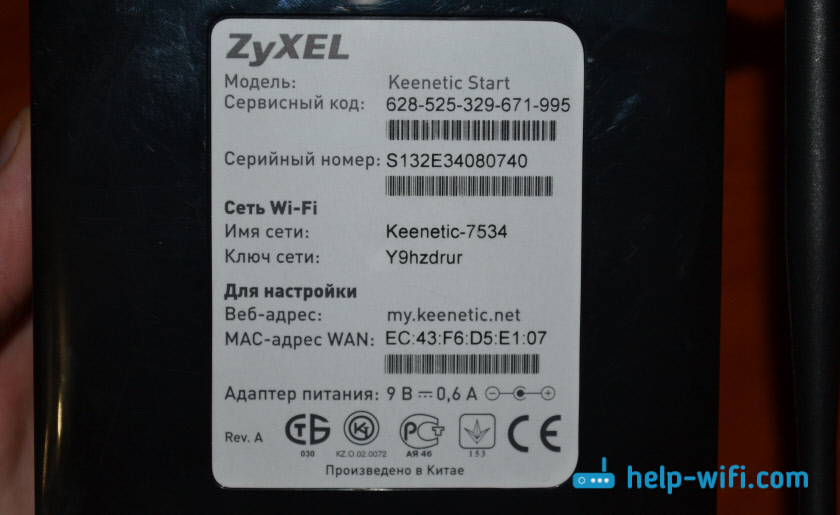 Ключ безопасности и другая информация на ZyXEL