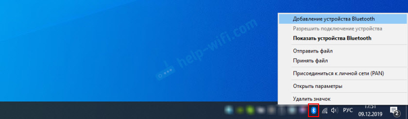 Практически всегда, когда есть поддержка Bluetooth, установлены драйверы и он работает, то в трее отображается значок . Трей в Windows – это область в правом нижнем углу (чаще всего) экрана. Возле часов.