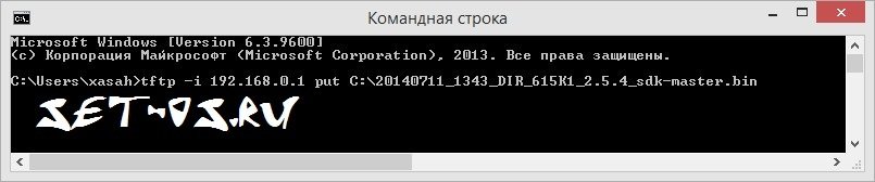 В моем примере файл с микропрограммой называется 20140711_1343_DIR_615K1_2.5.4_sdk-master.bin и лежит в корне диска C:\. Команда будет выглядеть так: