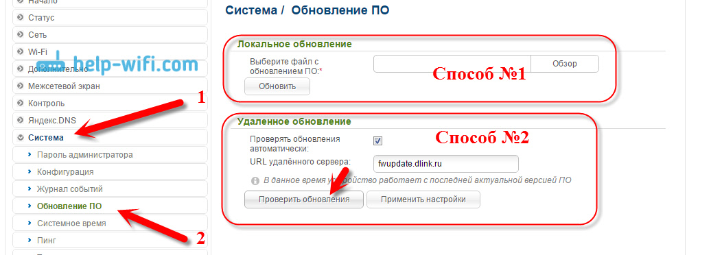 - Войти в веб-интерфейс роутера и перейти в раздел «Система» подменю «Обновление ПО».