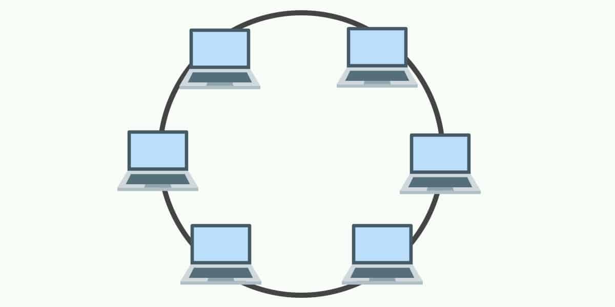 В сетях с кольцевой топологией компьютеры соединяются друг с другом в кольцевом формате. Каждое устройство в сети будет иметь двух соседей и не больше или не меньше. Кольцевые топологии обычно использовались в прошлом, но вам было бы трудно найти предприятие, все еще использующее их сегодня.
