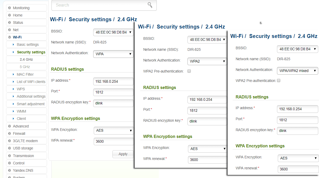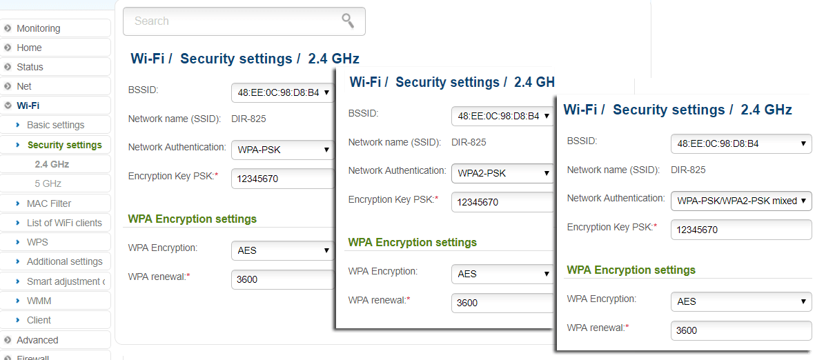 «WPA», «WPA2» и «WPA/WPA2 mixed»