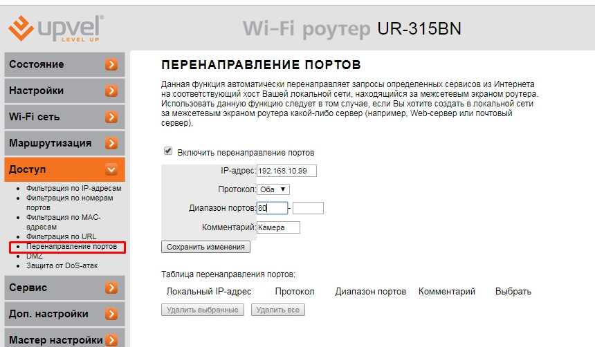 Здесь же находится Перенаправление портов, DMZ и SIP.