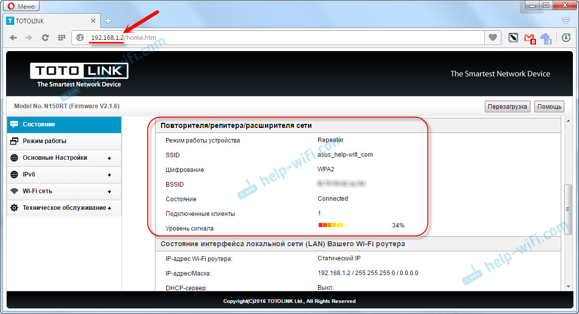 После перезагрузки все заработает. Вы увидите, что ваша основная Wi-Fi сеть усилена с помощью роутера Totolink. Вот собственно и все. Если вы захотите вернуть роутер в обычный режим работы, то проще всего сделать сброс настроек. Просто нажать и подержать 10 секунд кнопку RST-WPS. Или смотрите инструкцию по сбросу настроек на Totolink.