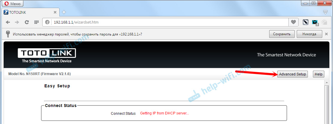 Если у вас настройки на английском, то нажимаем на кнопку «Advanced Setup», и смените язык на русский, или украинский.