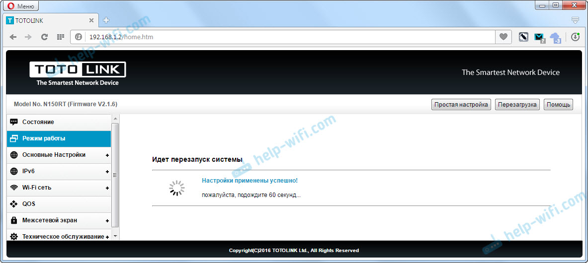 Все, теперь вы без проблем можете выполнить необходимые настройки вашего роутера.