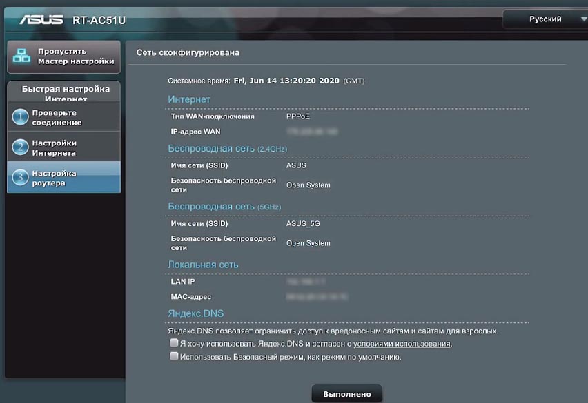 На последнем шаге проверяем все параметры конфигурации и выходим из мастера быстрой настройки Asus.