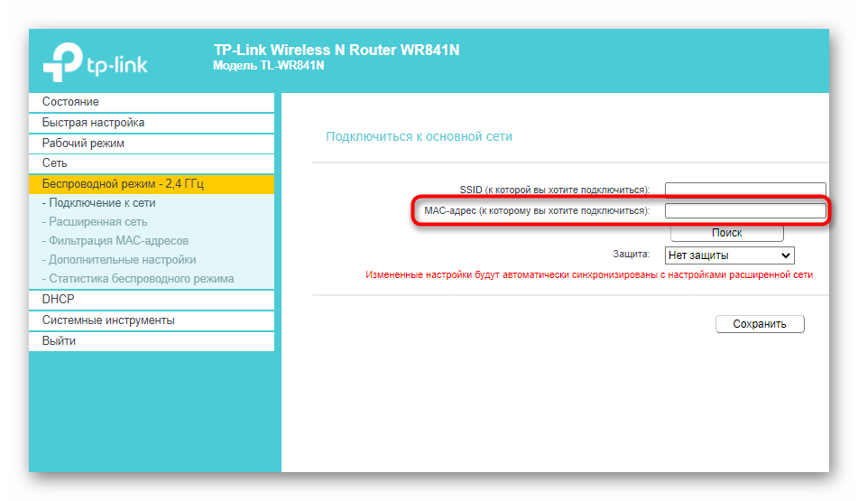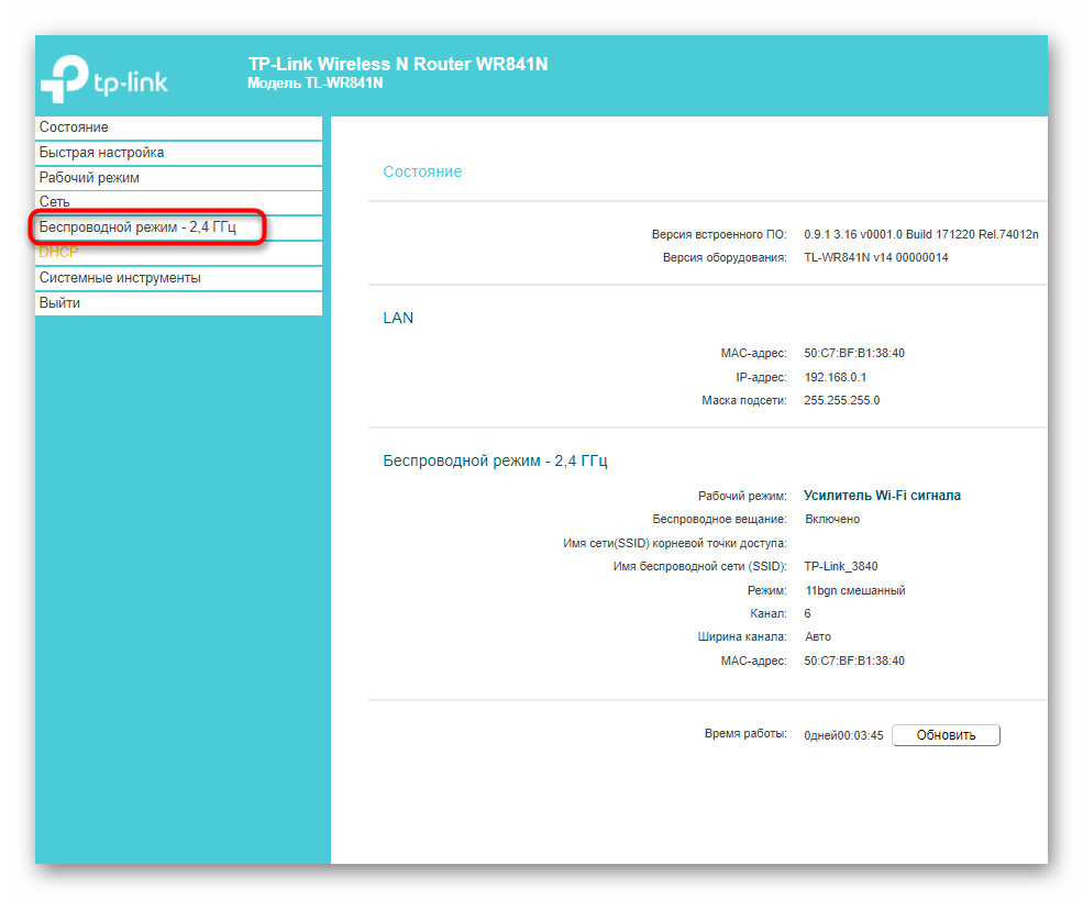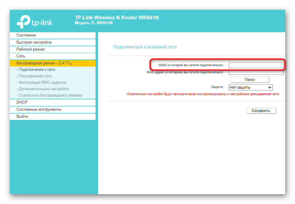 Сначала затронем основные параметры, которые понадобится выставить для корректной работы TP-Link в режиме повторителя. Если вы еще не знаете, этот режим подразумевает подключение к уже существующей сети Wi-Fi, раздаваемой от маршрутизатора любой модели, с дальнейшим расширением зоны покрытия. Включается он следующим образом: