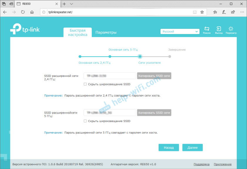 Настройка усилителя Wi-Fi сигнала TP-Link RE650 через веб-интерфейс