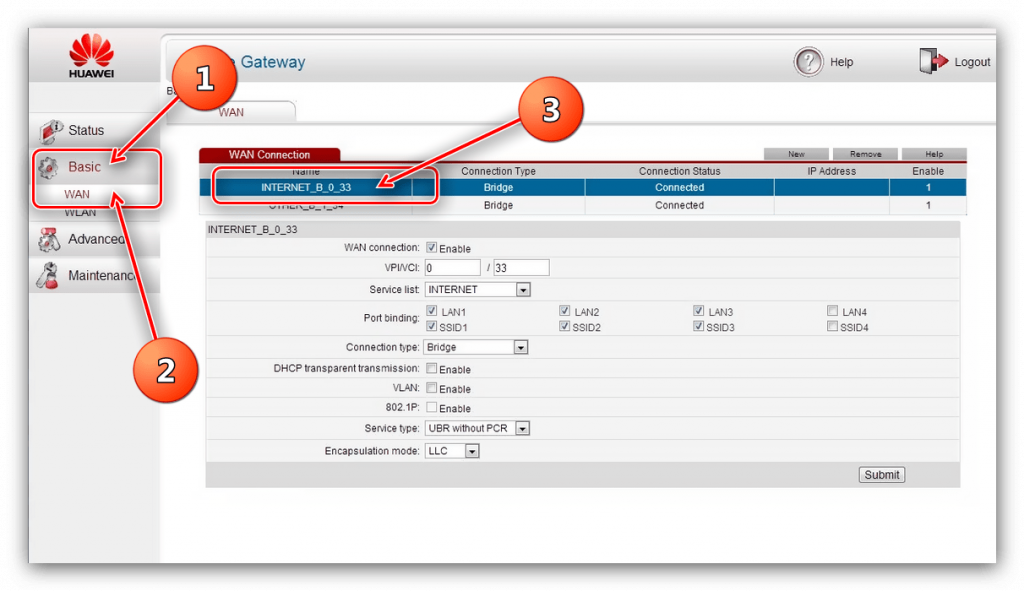 В главном меню выберите пункт «Basic» и подпункт «WAN». Удалите лишние подключения. Сейчас нужно будет создать новое, нажав на кнопку «NEW». Возможно, вы решите перенастроить старое подключение. Тогда щелкните по его названию.