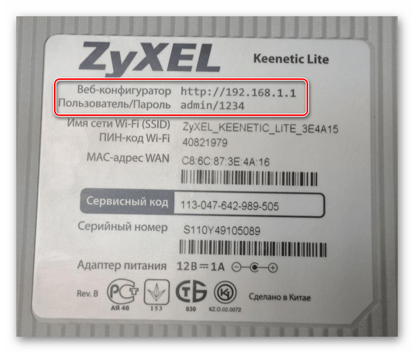 Далее переворачиваем его вверх дном и на наклейке на нижней крышке находим информацию для входа в раздел настроек — ip адрес, логин и пароль