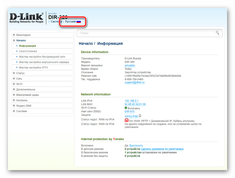 Если вы являетесь владельцем маршрутизатора Д-Линк, то для настройки интернета от Дом.Ру заходим в раздел «Начало — Click-n-Connect», выбираем его из списка и далее следуем всем шагам по уже опубликованной нами инструкции для роутеров D-Link.