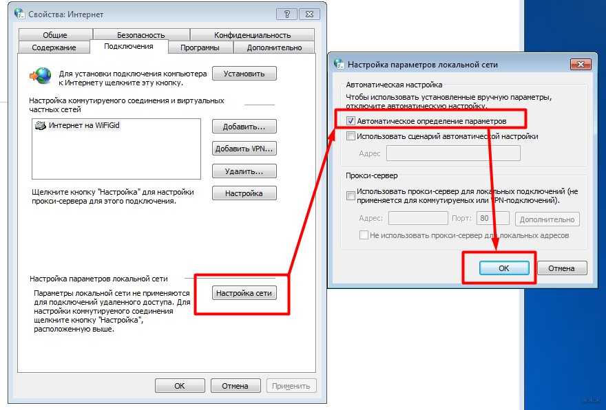 Нажимаем кнопку настройка сети и снимаем галку «Использовать Прокси-сервер», если она установлена. нажимаем «ОК».