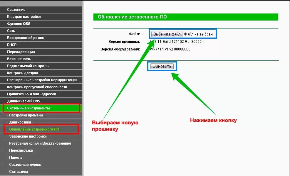 - зайти в «дополнительную регулировку», из нее в блок «системных инструментов» и «обновление встроенного ПО»;