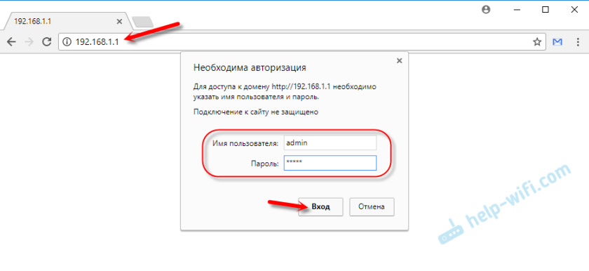 В адресном поле браузера ввести стандартный адрес — 192.168.1.1. После этого всплывет окно входа в систему, которое аналогично предложенному на рисунке ниже. В форме ввода Tp-Link W8901N ввести имя клиента и пароль «Admin» (по умолчанию). После этого войти, чтобы попасть на поле управления веб-интерфейсом. Для окончания быстрой настройки сделать следующее: