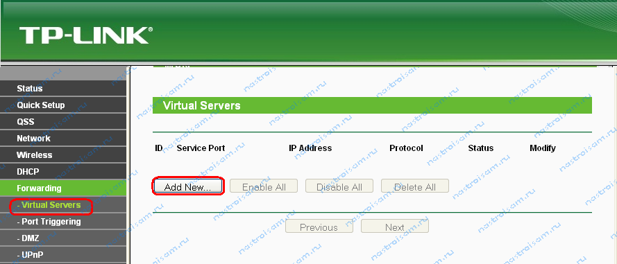 Для того, чтобы пробросить порт на роутере TP-Link TL-WR841ND, Вам надо перейти в раздел «Forwarding» (Переадресация) -> «Virtual Servers» (Виртуальные сервера):