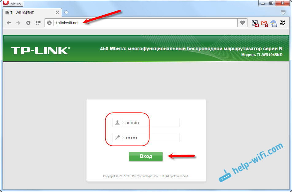 Открываем любой браузер, и переходим по адресу tplinkwifi.net (IP-адрес 192.168.0.1 так же работает). Вводим имя пользователя и пароль, и попадем в веб-интерфейс маршрутизатора.