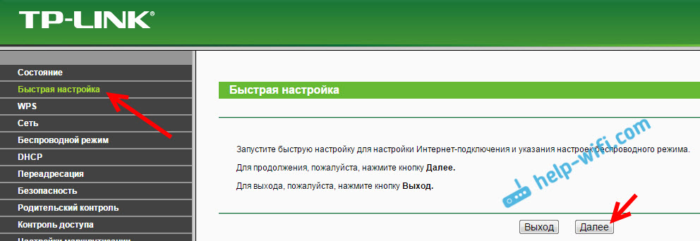Если таким способом у вас не получилось настроить интернет, то перейдите на вкладку Быстрая настройка, и попробуйте настроить все с помощью пошаговой инструкции. Там можно просто выбрать страну, провайдера, и т. д. Возможно, так вам будет легче.