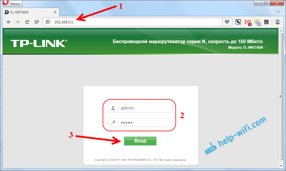 Открываем браузер и заходим в админпанель ТП-Линк TL-WR740N.