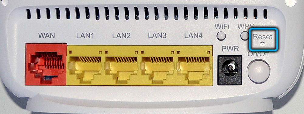 Если возникла необходимость обнулить настройки маршрутизатора (например, если вы не помните пароль для входа в веб-интерфейс), можно воспользоваться кнопкой Reset, находящейся на задней панели роутера. Нажимаем её и удерживаем на протяжении примерно 10 секунд, после чего устройство перезагрузится с заводскими настройками.