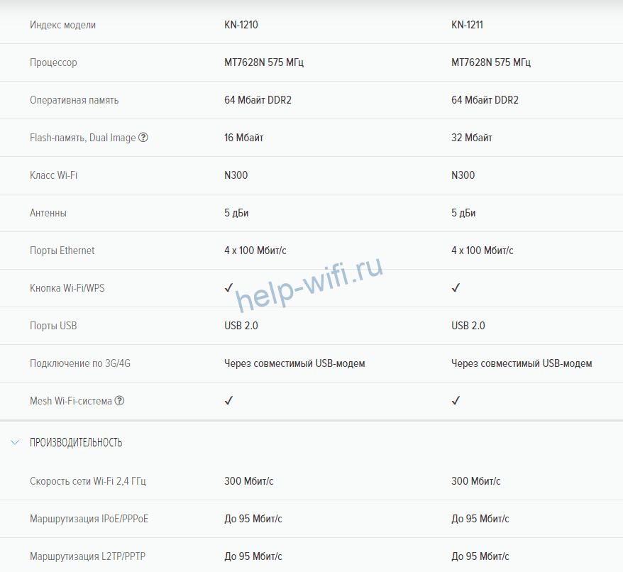 Сравнение основных характеристик Keenetic 4G KN-1210 и KN-1211: