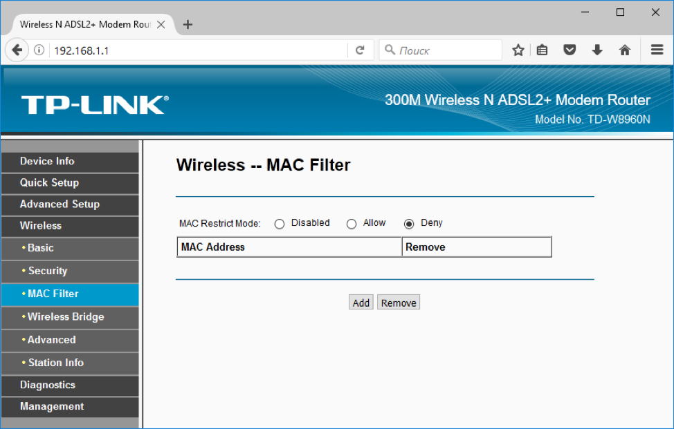 MAC Filter – фильтрация по адресу MAC. Позволяет подключаться к сети исключительно настроенным вручную устройствам, да и то после ввода пароля. Никаких чужаков. Не рекомендуется ни для домашнего использования, ни для небольшого офиса, где все свои.