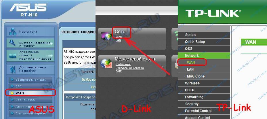 Все основные параметры подключения к сети Интернет находятся в разделе веб-интерфейса под названием «WAN» или «Интернет»: