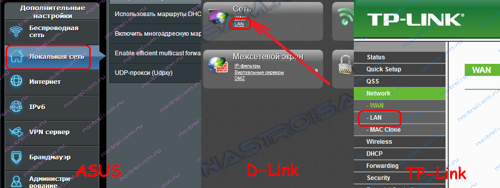 Пример конфигурации локальной сети на маршрутизаторе Asus: