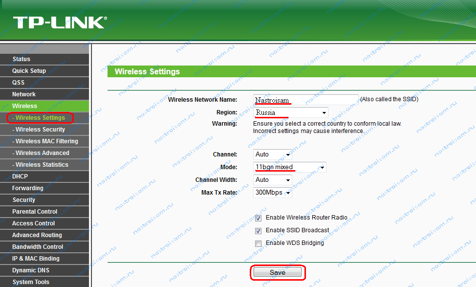 Конфигурация основных параметров WiFi на роутерах TP-Link:
