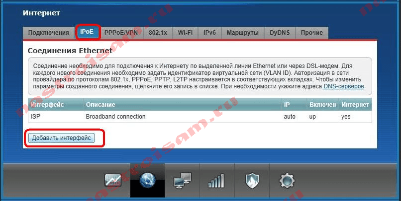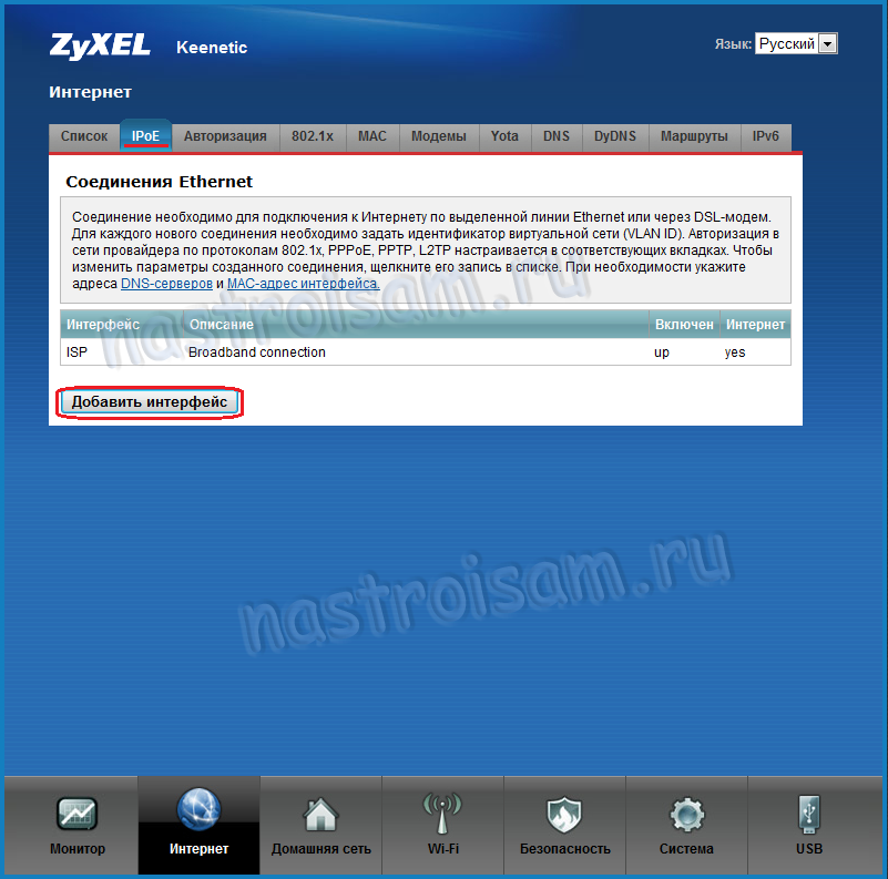 Нажимаем кнопку «Добавить интерфейс»: