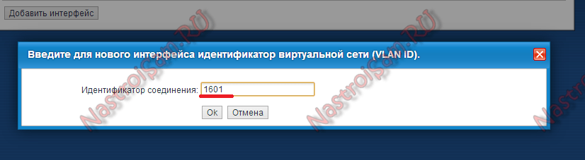 Появится окно с запросом VlanID