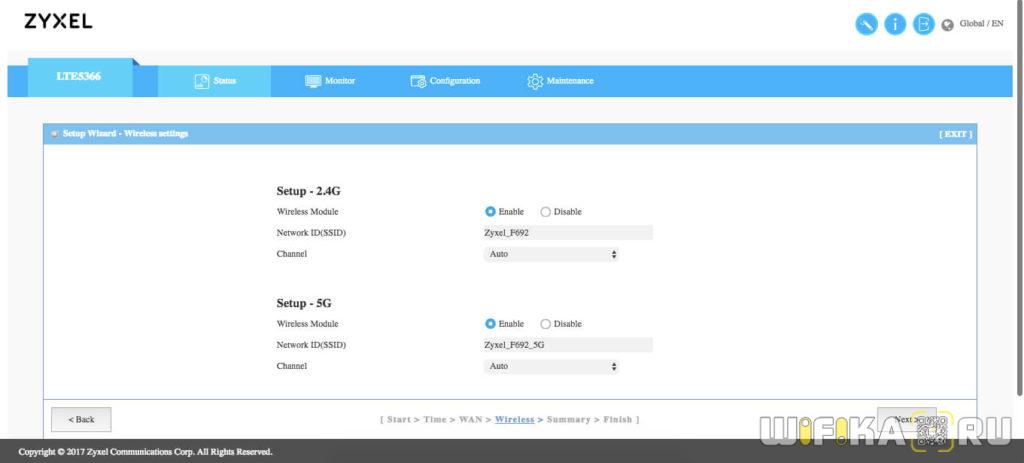 Далее даем название будущим беспроводным сетям в диапазонах 2.4 и 5 GHz. При желании можно отключить любую из них (Disable). Здесь же есть функция смены канала wifi.