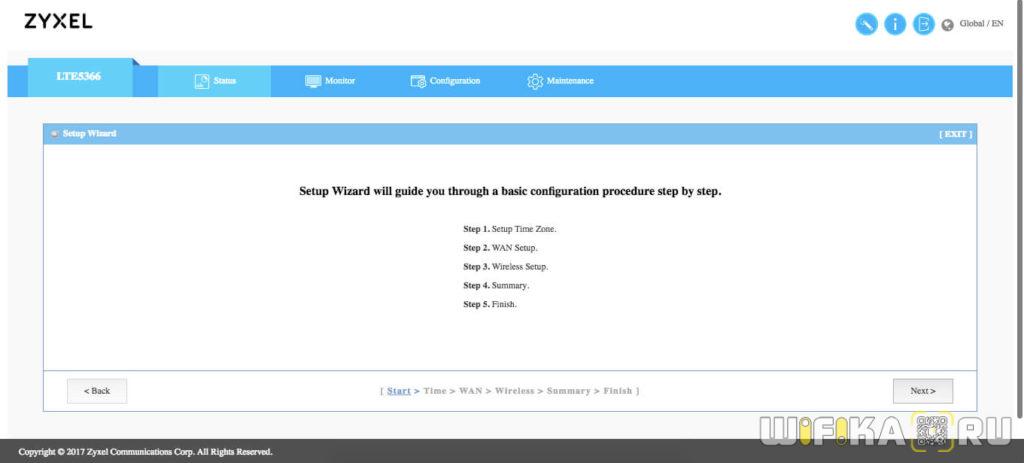 Попадаем в панель управления GSM роутера. Начать работу я бы рекомендовал с мастера быстрой настройки. Чтобы в него попасть жмем на иконку в правом верхнем углу.