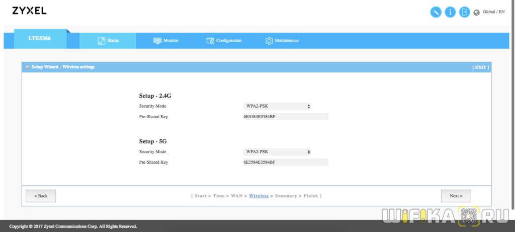 Для настройка маршрутизатора Zyxel LTE5366-M608 необходимо подключиться к одной из его беспроводных сетей, которые он начинает по умолчанию раздавать при включении в розетку. Они сразу запароленные и имеют вид «Zyxel_XXX» и «Zyxel_XXX_5G». Ключ авторизации указан на наклейке на оборотной стороне корпуса и у каждого он индивидуален.