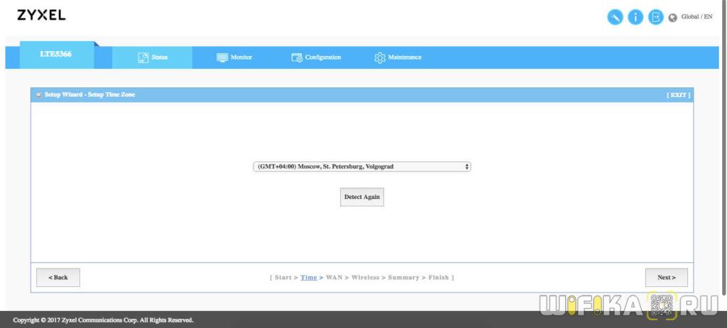 Сначала выбираем свой часовой пояс и жмем на кнопку «Next»