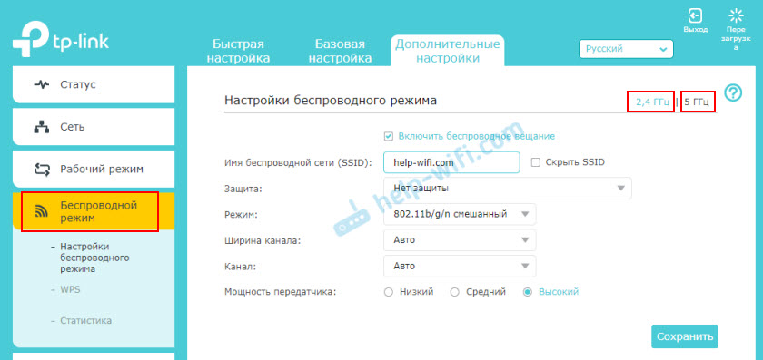 Отдельно меняем настройки (имя, пароль) для каждого диапазона.
