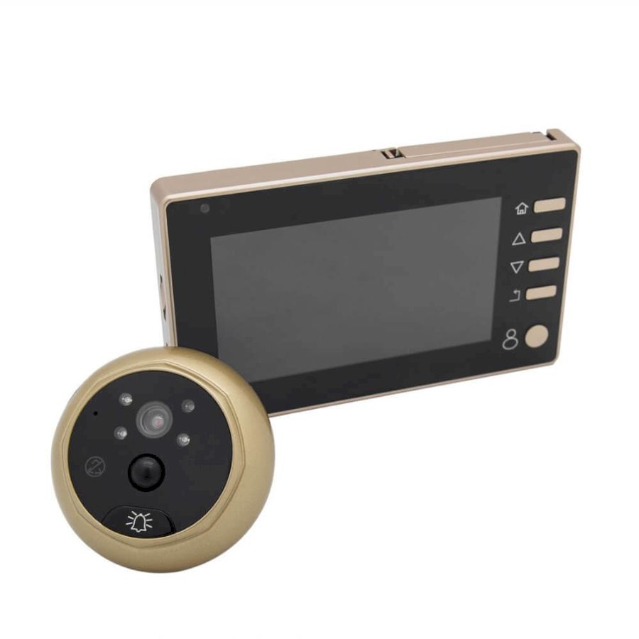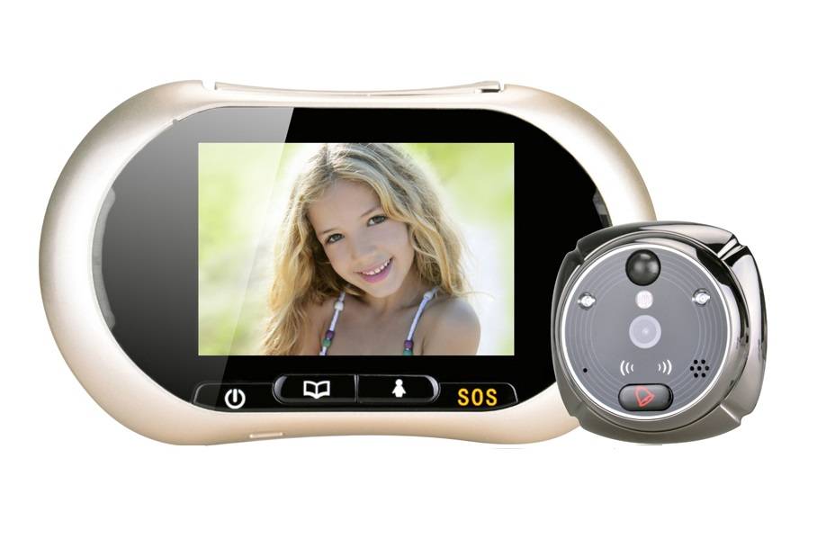 Современное оборудование, которое внешне не отличить от стандартного дверного глазка. Камера с разрешением 1,3 Мп оснащена функцией 5-ти кратного цифрового зума. Четкое изображение передается на качественный монитор. Прибор имеет встроенную инфрокрасную подсветку, благодаря которой камера может снимать и передавать сигналы в ночное время суток. Работает видеозвонок от литиевого аккумулятора, заряда которого достаточно для 1000 записей. Устройство универсальное, оно может также функционировать от сети. Из дополнительных функций: автосрабатывание при звонке и движении за дверью. Для установки изделия не нужно никаких дополнительных инструментов, оно легко монтируется в место, где ранее размещался обычный глазок. Дополнительно можно настроить время, дату, установить мелодию звонка. И все это за небольшие деньги.