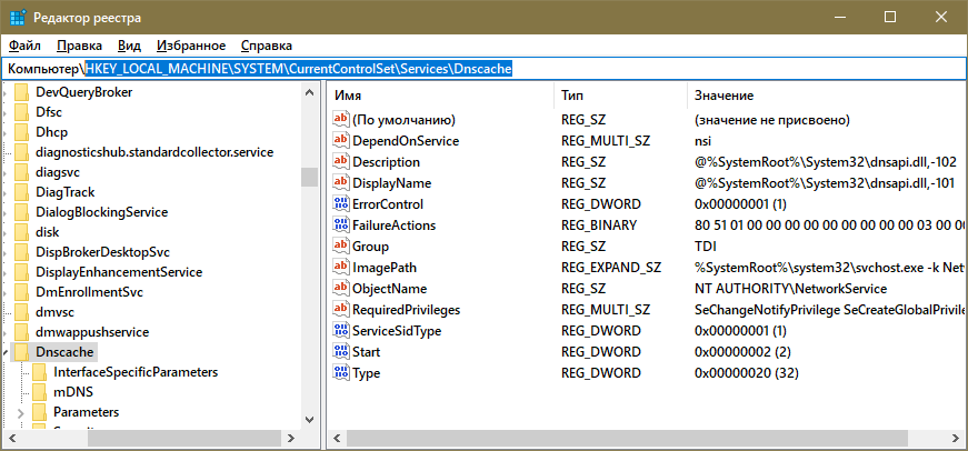 Перезапускаем службу ДНС-клиент на Windows
