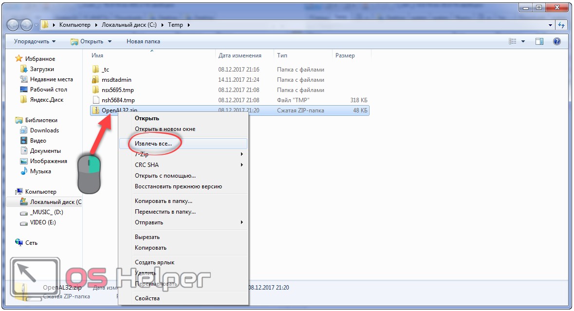 Совет. В сети можно встретить торрент для openal. Если вам удобно пользоваться им, не забудьте проверить файлы на вирусы перед установкой. К сожалению, злоумышленники часто снабжают подобные программы вирусами, способными нанести непоправимый вред ПО. - Далее важный момент – куда кидать openal32.dll. На этом этапе возникают непонятки, на деле все выглядит так: