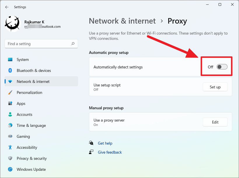 Если вы настроили прокси-сервер или включили автоматические настройки прокси для защиты вашей конфиденциальности в Интернете, это может быть причиной вашей ошибки «Chrome не отвечает» в Windows 11. В этом случае вам необходимо отключить настройки прокси.: