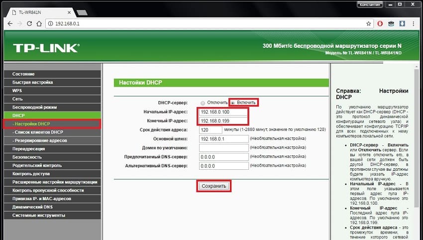 Включаем его и сохраняемся.На некоторых моделях в меню может быть отдельный раздел DHCP, к примеру — на некоторых моделях TP-Link:
