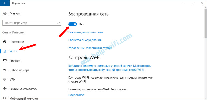 Ну а если у вас нет этих кнопок и вкладок в настройках, то смотрите первый раздел этой статьи, или отдельную инструкцию: Как включить Wi-Fi в Windows 10, когда нет кнопки Wi-Fi и ошибка «Не удалось найти беспроводные устройства на этом компьютере».
