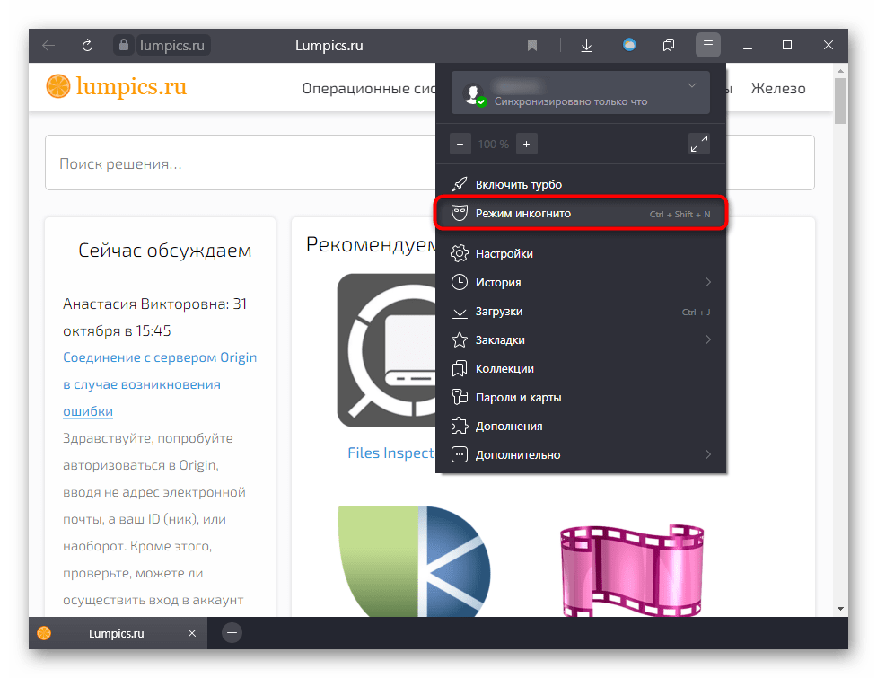 - Нажмите на три точки в правом верхнем углу Chrome и выберите «Новое окно в режиме инкогнито».